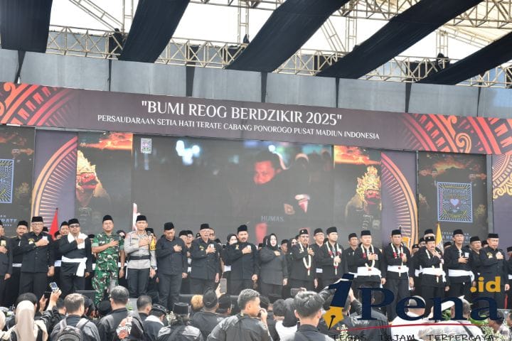 PONOROGO | 1pena.id – Alun-alun Kabupaten Ponorogo, Jawa Timur, Minggu (28/12/2025), menjadi saksi peristiwa akbar Bumi Reog Berdzikir (BRB) Persaudaraan Setia Hati Terate (PSHT) Pusat Madiun Cabang Ponorogo Tahun 2025. Kegiatan ini diikuti ratusan ribu pendekar silat PSHT dari berbagai daerah di Nusantara.