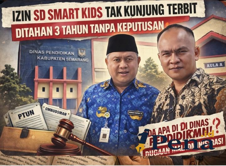 Kab Semarang|1pena.id — Polemik tertahannya izin operasional SD Plus Tahfidzul Quran Smart Kids kini memasuki babak serius. Pernyataan Pelaksana Tugas (Plt) Kepala Dinas Pendidikan Kabupaten Semarang, M. Taufiqur Rahman, S.Ag., M.Si., dinilai justru memperkuat dugaan adanya pelanggaran hukum administrasi dalam proses perizinan yang telah berlarut sejak tahun 2023.