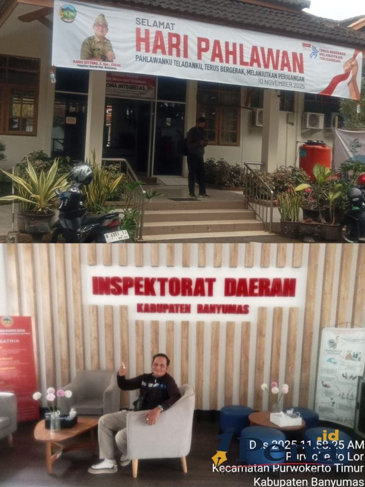 Pada Senin (01/12/2025), tim 1pena.id mencoba melakukan konfirmasi langsung ke Kantor Inspektorat Banyumas. Namun, menurut petugas penerima tamu, Kepala Dinas Inspektorat Djoko Setyono, S.Sos, sedang melaksanakan dinas luar.