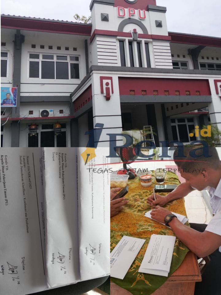 Semarang, 1Pena.id — Upaya redaksi 1Pena.id untuk memperoleh tanggapan resmi dari Dinas Pekerjaan Umum (PU) Kabupaten Semarang terkait sejumlah temuan lapangan hingga kini belum mendapat respons. Surat klarifikasi/konfirmasi yang dikirimkan pada 1 Desember 2025 tidak kunjung dijawab oleh Kepala Dinas PU maupun pejabat terkait lainnya.