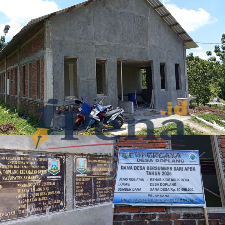 Menanggapi keberadaan papan proyek (prasasti) yang dipasang di area gedung serbaguna, namun bertuliskan “Rehab Kios Milik Desa” dengan nilai Rp50 juta dari Dana Desa 2025, Kepala Desa Doplang menjelaskan bahwa kegiatan tersebut masih dalam tahap perubahan anggaran.