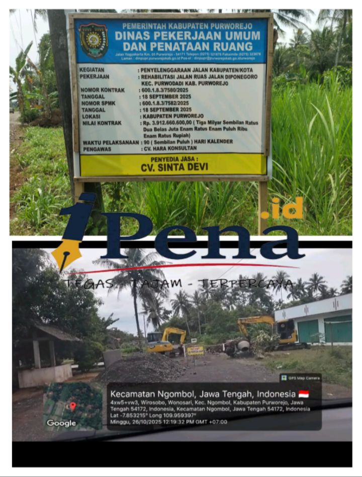 Purworejo, 1pena.id — Pelaksanaan proyek rehabilitasi Jalan Diponegoro di Desa Wonosari, Kecamatan Ngombol, Kabupaten Purworejo, Jawa Tengah, menuai sorotan tajam dari warga dan pemerintah desa. Proyek yang menelan anggaran hampir Rp 4 miliar dari Dinas Pekerjaan Umum dan Penataan Ruang (DPUPR) Kabupaten Purworejo itu diduga memiliki keterkaitan dengan salah satu anggota DPRD Provinsi Jawa Tengah dari Dapil Purworejo.