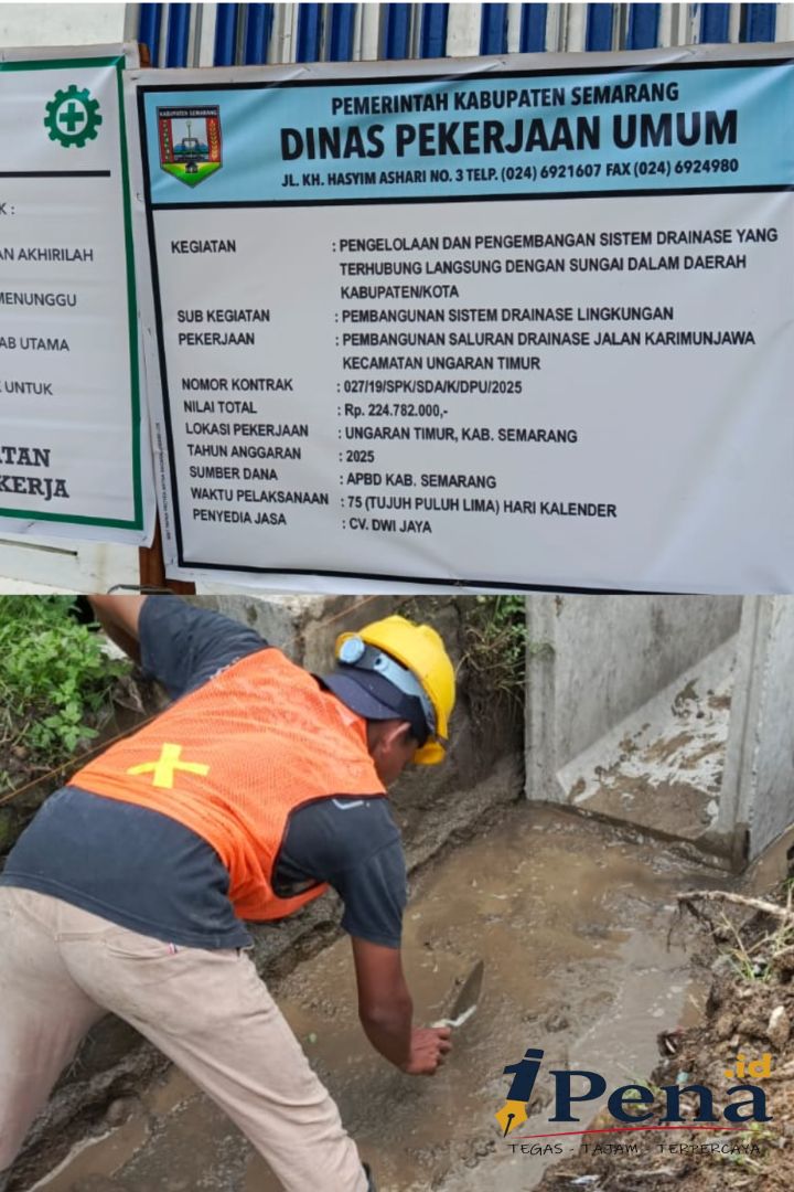 KABUPATEN SEMARANG, 1Pena.id — Proyek pembangunan saluran drainase di Jalan Karimunjawa, Kecamatan Ungaran Timur, Kabupaten Semarang, menuai sorotan tajam. Pekerjaan yang dilaksanakan oleh CV Dwi Jaya dengan nilai kontrak Rp224,78 juta itu diduga tidak memenuhi standar teknis dan prosedur konstruksi sebagaimana mestinya.